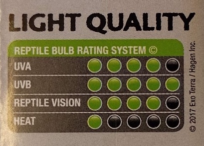 Emballagen inkluderer alle nødvendige oplysninger: Fuld spektralgraf, UV-spektralgraf, krybdyrpæreklassificeringssystem og afstandsrelateret information som: UVB-output - Fotosyntese - Ferguson-zoner og Exo Terra Reptile UVB-diagram.