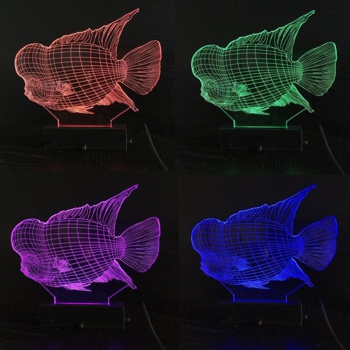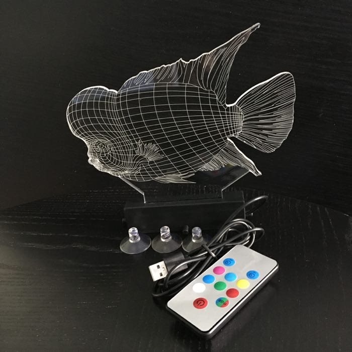 3D akvarielampe med akrylplade - Flowerhorn