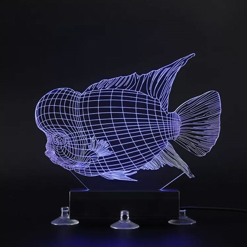 Fantastisk 3D akvarielampe med akrylplade lyser med farverigt lys som tilføjer en glitrende 3D visuel effekt til dit akvarium.