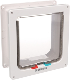 Funktioner døre og klapper:    Kan skæres til , Nem at samle , Lydløs , Skabelon medfølger , Med 4 indstillinger , Med børstetætning , Med transparent klap , Med tunnel