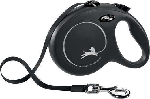 Flexi Leash 5 meter bånd sort også kaldet rullende snor til hunde op til 50 kg.
