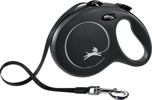 Flexi Leash 8 meter bånd sort også kaldet rullende snor til hunde op til 50 kg.