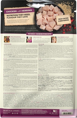 ACANA™ er et veletableret Champion Petfoods-mærke fra Canada. ACANA gør sig umage med at fremstille det bedste foder til kæledyr, bl.a. ved at købe animalske proteiner af høj kvalitet som fersk fjerkræ, kød og vildtfanget fisk. Alt fra regionale producenter. Det rå kød fryses ned, når det er allermest friskt, så næringsstofferne bevares ligesom fersk kød og friske frugter og grønsager udelukkende opbevares under køl og dermed ikke tilsættes konserveringsmidler. Opskrifterne er afbalancerede med friske grøntsager, frugter og planter for at understøtte et fuldt og sundt liv. Foderet indeholder aldrig kunstige smagsstoffer, farver eller konserveringsmidler, ligesom der heller ikke er tilsat soja, majs, tapioka eller hvede.