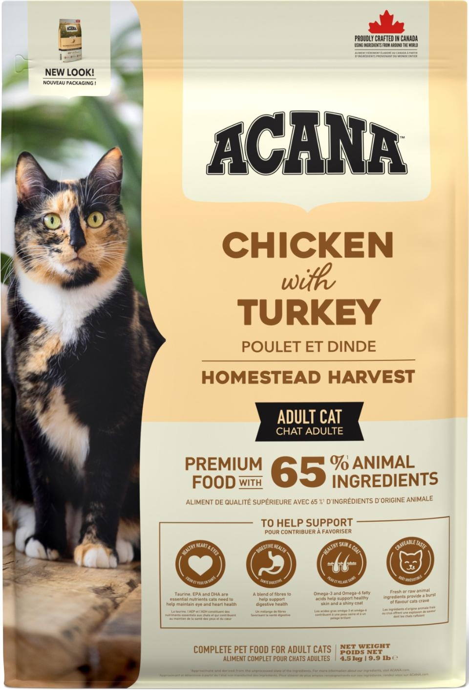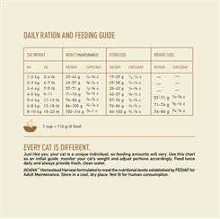 ACANA™ Homestead Harvest tørfoder er fyldt med proteinrige animalske ingredienser, herunder fersk kylling og kalkun, og sunde korn. Alle ingredienser, der hjælper med at understøtte sund hud og en skinnende pels, samt vedligeholdelse af muskler og knogler. Disse kibbles er lavet med fuldt udbytte af kød, organer og brusk, hvilket giver din kat alt, hvad den behøver for at være sund, glad og stærk. Og med en lækker smag, som den vil elske. De indeholder kun kvalitetsingredienser og ingen kunstige smagsstoffer, farver eller konserveringsmidler.