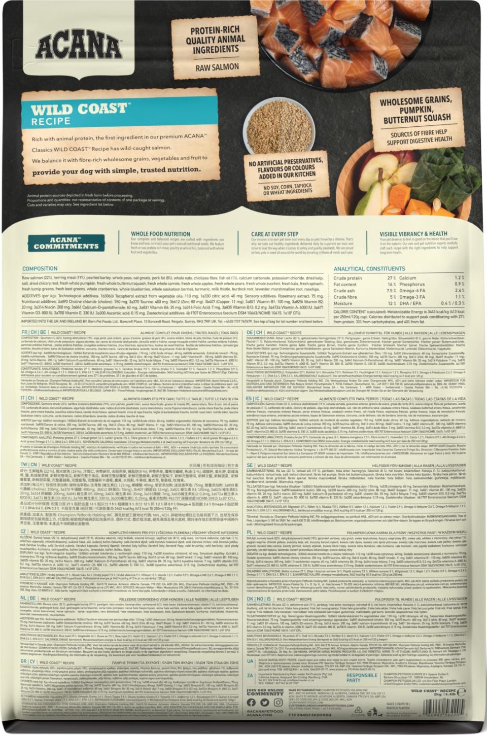 ACANA™ Classics Wild Coast tørfoder til hunde i alle livsfaser er sammensat med rå laks, sild, frugt og grøntsager og sunde kornsorter som hunden har brug for til at forblive glad, sund og stærk. Disse kibbles hjælper med at give fuld støtte til immunforsvaret, en sund fordøjelse samt en sund hud og pels. De indeholder kun kvalitetsingredienser og ingen kunstige smagsstoffer, farver eller konserveringsmidler.
