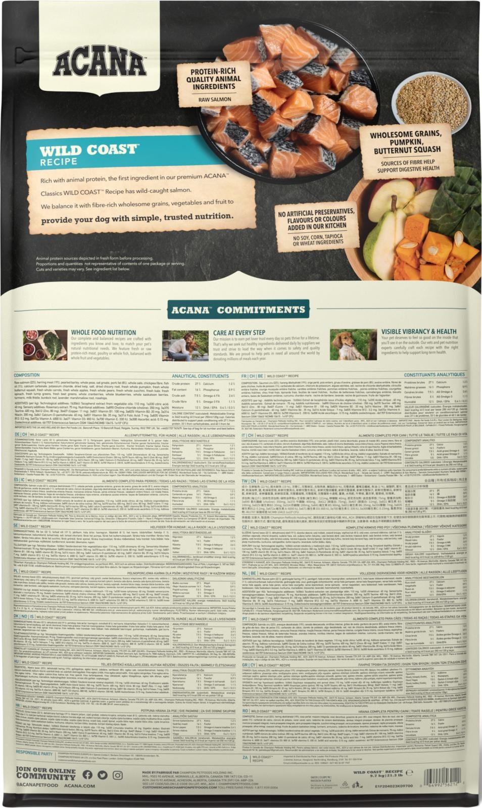 ACANA™ Classics Wild Coast tørfoder til hunde i alle livsfaser er sammensat med rå laks, sild, frugt og grøntsager og sunde kornsorter som hunden har brug for til at forblive glad, sund og stærk. Disse kibbles hjælper med at give fuld støtte til immunforsvaret, en sund fordøjelse samt en sund hud og pels. De indeholder kun kvalitetsingredienser og ingen kunstige smagsstoffer, farver eller konserveringsmidler.