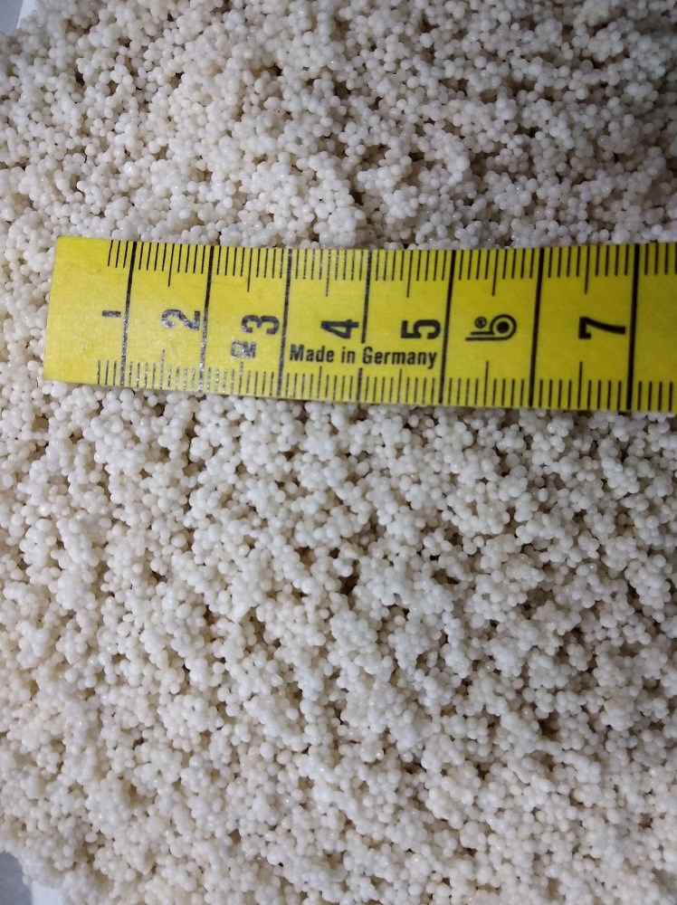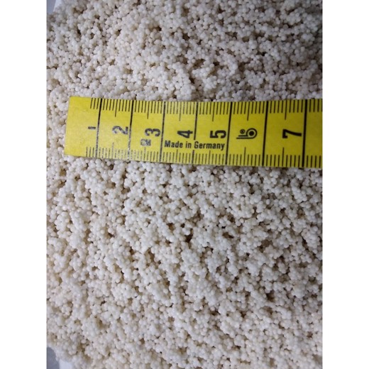 Dette syntetiske hvide beach akvarie grus er kule rundt og dermed ikke skarpt, kornstørrelsen er 1-2mm