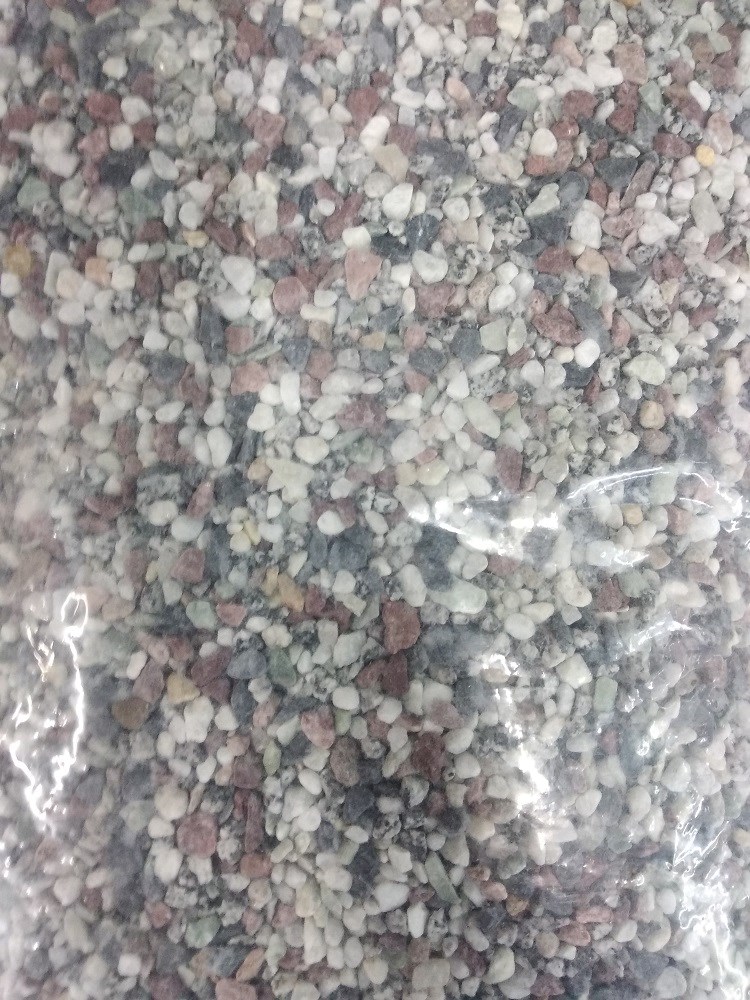 Dette grus er et groft flodsand, dvs det er afrundet og ikke skarpt som eks. de sorte sand/sten der er knuste.