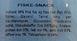 • Anvendelse: Ideel som en daglig treat, til træning eller som en lille forkælelse. De små bidder er nemme at håndtere og kan bruges til at motivere katten, fx til at komme indendørs eller lege med en fjerstok. Den stærke fiskeduft gør den særligt attraktiv for katte, der elsker fiskesmag.