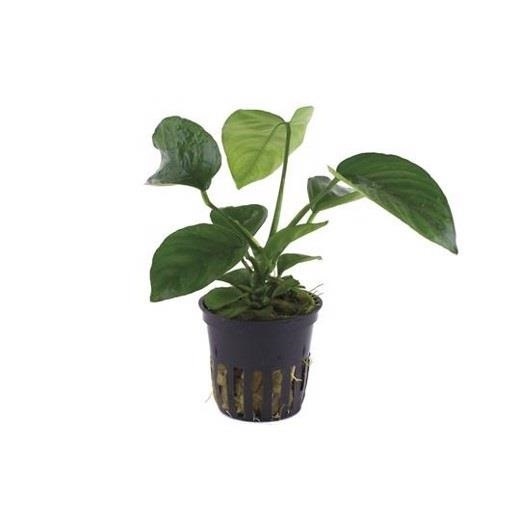 Anubias barteri var. caladiifolia stammer fra et australsk vævsformeringslaboratorium. Det er en meget smuk variant med hjerteformede blade. Da bladene lever flere år kan Anubias barteri var. caladiifolia sagtens danne store grupper trods den langsomme vækst. En gruppe af Anubias barteri var. caladiifolia, der er blevet mere end 50 cm bred på nogle år, er ikke usædvanlig.