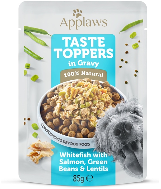 Applaws Dog Taste Toppers - Whitefish Pouch with Salmon, Green Beans & Lentils in Gravy 85g