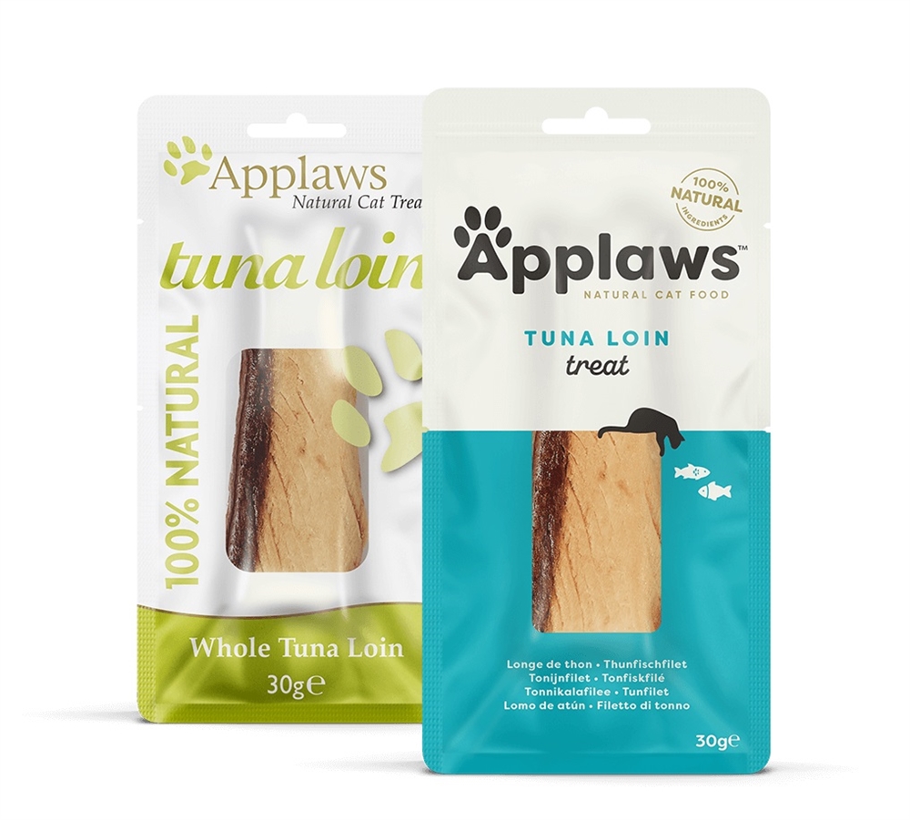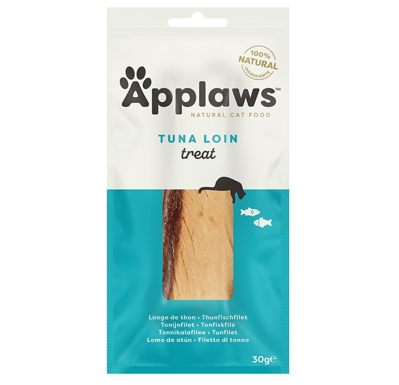 Applaws Tuna Loin er et 100 % naturligt komplementært kæledyrsfoder til voksne katte, der ikke indeholder mere end de angivne ingredienser.