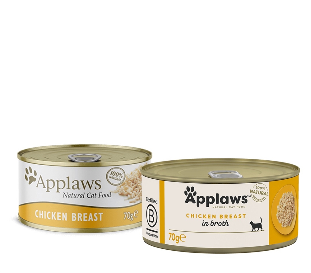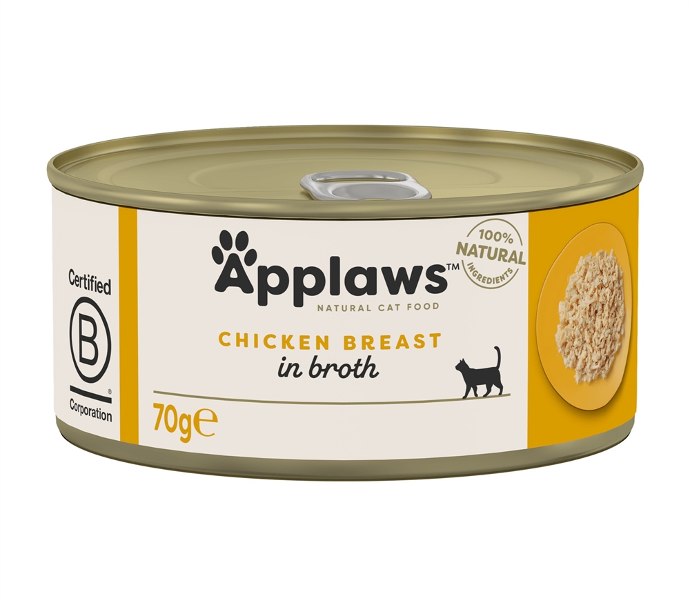 Applaws kyllingebryst i bouillon er et 100 % naturligt komplementært kæledyrsfoder til voksne katte, der ikke indeholder mere end de angivne ingredienser.