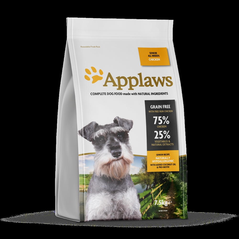 Applaws premium tørkost med naturlige ingredienser til ældre hunde af alle racer. Komplet og afbalanceret foder, der indeholder alt hvad hunden har brug for, for at  trives og forblive sund. Foderet er 100 % kornfrit og fremstillet af 75 % kylling.
