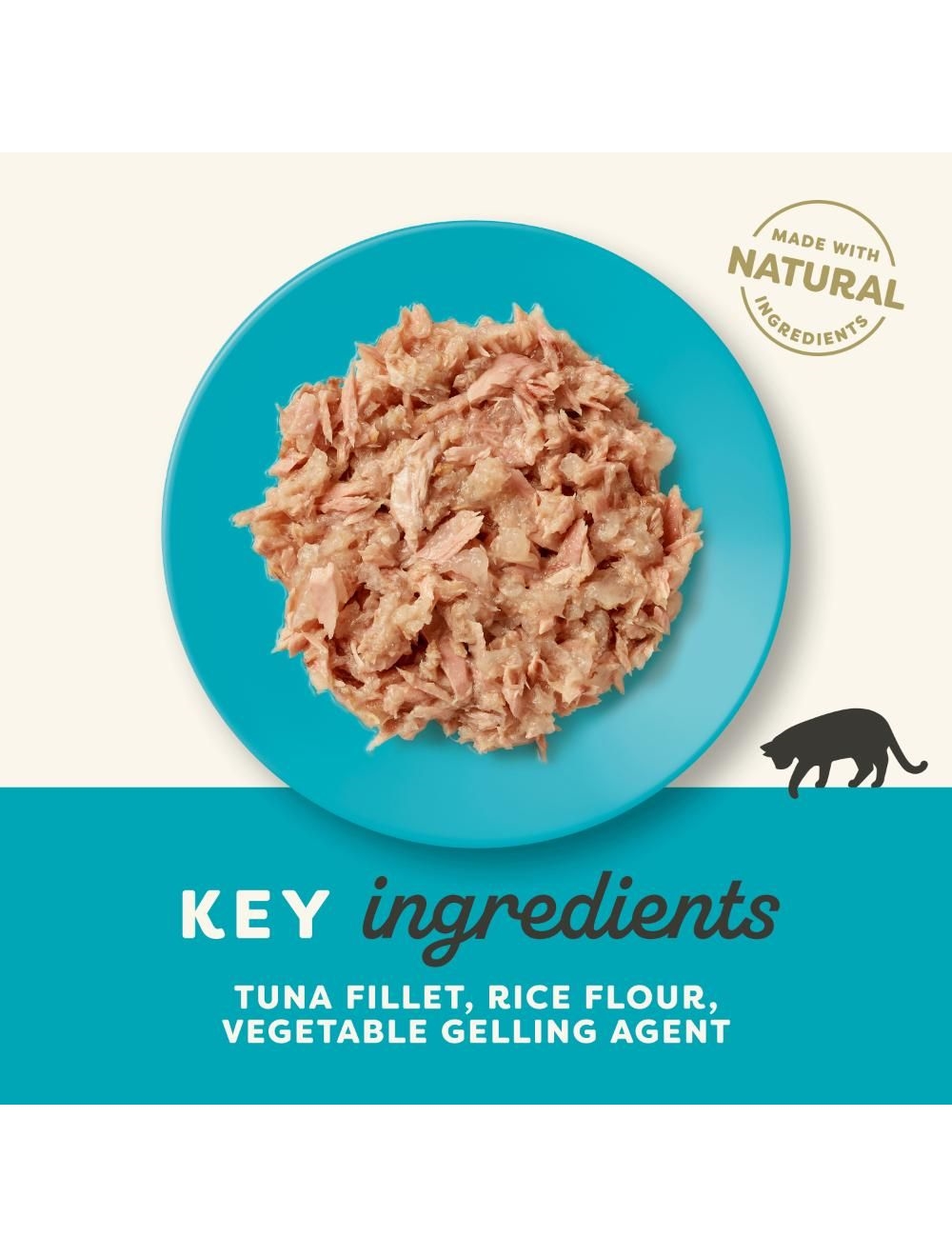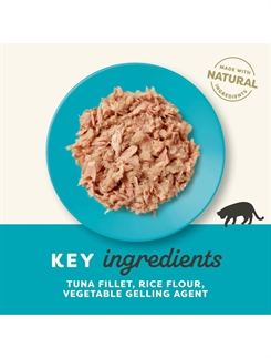 Tunfilet* 60%, rismel*, vegetabilsk geleringsmiddel.