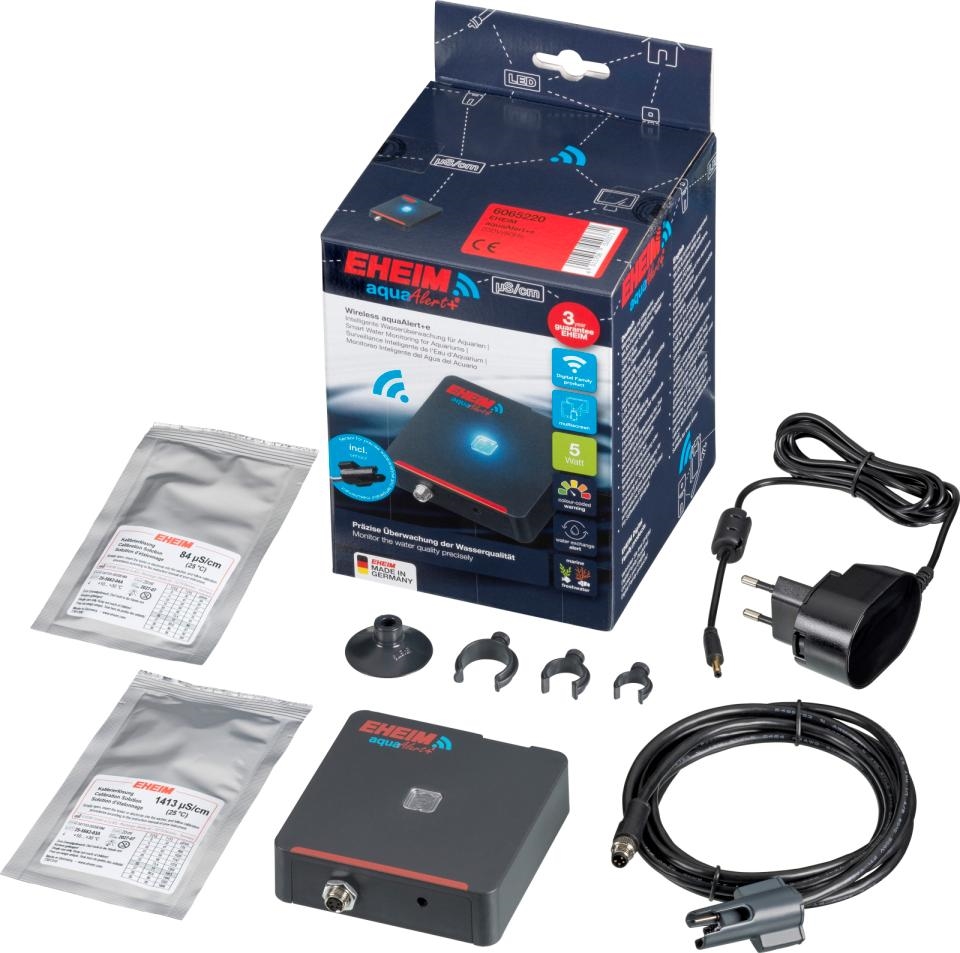 Den nye EHEIM aquaAlert+e er en intelligent ledningsevnemåler med høj præcision til løbende overvågning af vandkvaliteten i dit akvarium. Ved nøjagtigt at registrere den elektriske ledningsevne (μS/cm) giver apparatet præcise data om saltindholdet og potentielle forurenende stoffer TDS (totalt opløste stoffer) som f.eks. natriumklorid, nitrit og nitrat (ophobning af organisk affald).