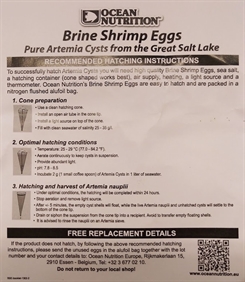 Artemia-æg, der har en udklækningsgrad på mere end 90%. De klækkes til Artemia nauplii inden for 18 til 30 timer. Artemia er kendt for at være en ideel levende føde til de første stadier af mange saltvands- og ferskvandsfisk og for mange hvirvelløse dyr.