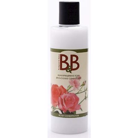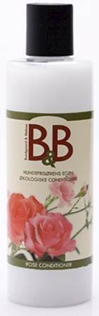 B&B økologisk conditioner med rosenolie efterlader pelsen blød, blank og helt igennem lækker. Rosenolie giver en let og luftig pels og gør udfriseringen til en leg.