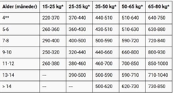 Vitamin A 15.000 IE; vitamin D3 1.500 IE; vitamin E 150 mg; taurin 500 mg; kobber (som kobber(II)sulfat-pentahydrat) 12,5 mg; jern (som jern(II)sulfat-monohydrat) 200 mg; mangan (som mangan(II)oxid) 40 mg; zink (som zinkoxid) 125 mg; jod (som calciumjodat, vandfri) 2 mg; selen (som natriumselenit) 0,05 mg.