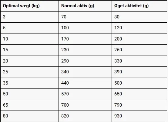 Analytiske bestanddele: Protein 25 %; fedt 14 %; råaske 7,5 %; råfibre 3,2 %; fugtighed 10 %; calcium 1,5 %; fosfor 1 %; natrium 0,3 %