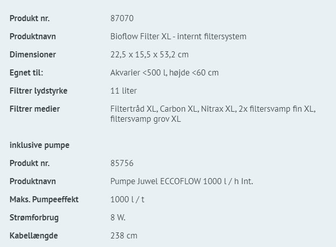 Bioflow filter XL - 53,2 cm høj - til akvarier min 60cm høje