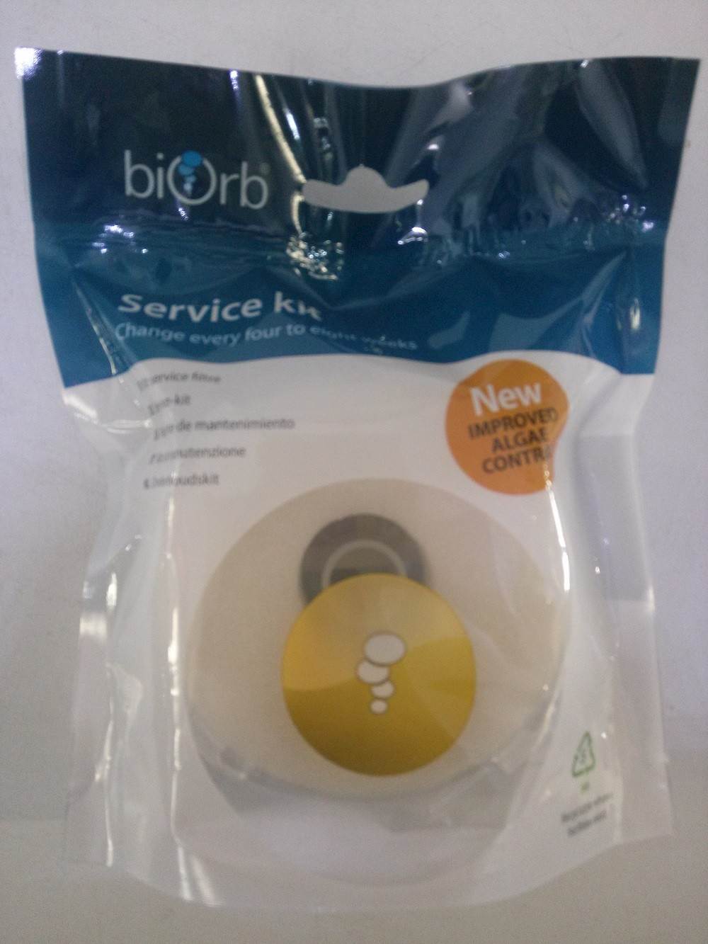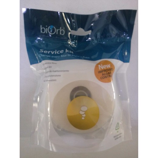 Sæt indeholdende alle nødvendige dele for vedligeholdelse af BiOrb, dvs. special svamp til rengøring, filtersvamp, filterpatron med aktivt kul og vandtilberedning.