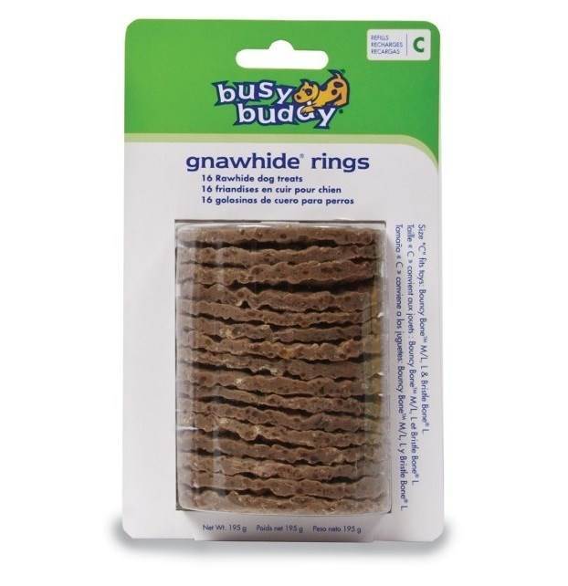 Refill C til Busy Buddy Bouncy Bone Legetøj Large som er et 3-i-én legetøj: nylon ben, gummi bold, og genopfyldelig godbidde legetøj.