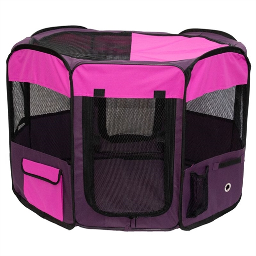 Løbegården måler 90 cm fra spids til spids og 82 cm på tværs mellem de brede sider. Hvert panel er ca. 38 cm bredt og 59 cm højt, hvilket giver rigelig plads til din hund at lege og bevæge sig frit i.