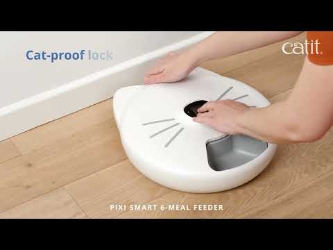 Catit Pixi Smart 6-Meal foderautomat sørger du for mad til din kat, selv når du ikke er hjemme. Du kan programmere op til seks forskellige måltider om dagen og få fodring med det samme, hvis du ønsker det – nemt via smartphone-appen. Foderautomaten er konstrueret sikkert for katte og er blandt andet udstyret med en betjeningslås. LC-displayet med touch-betjening muliggør en ukompliceret betjening som alternativ til appen.