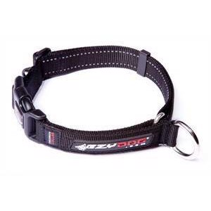 EZYdog Checkmate 1,5mmx34-45cm sort nylon halsbånd med halvkvæl, med reflexsyning og holder til hundetegn.