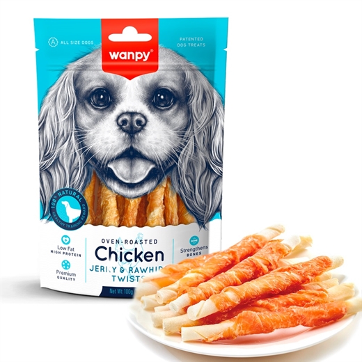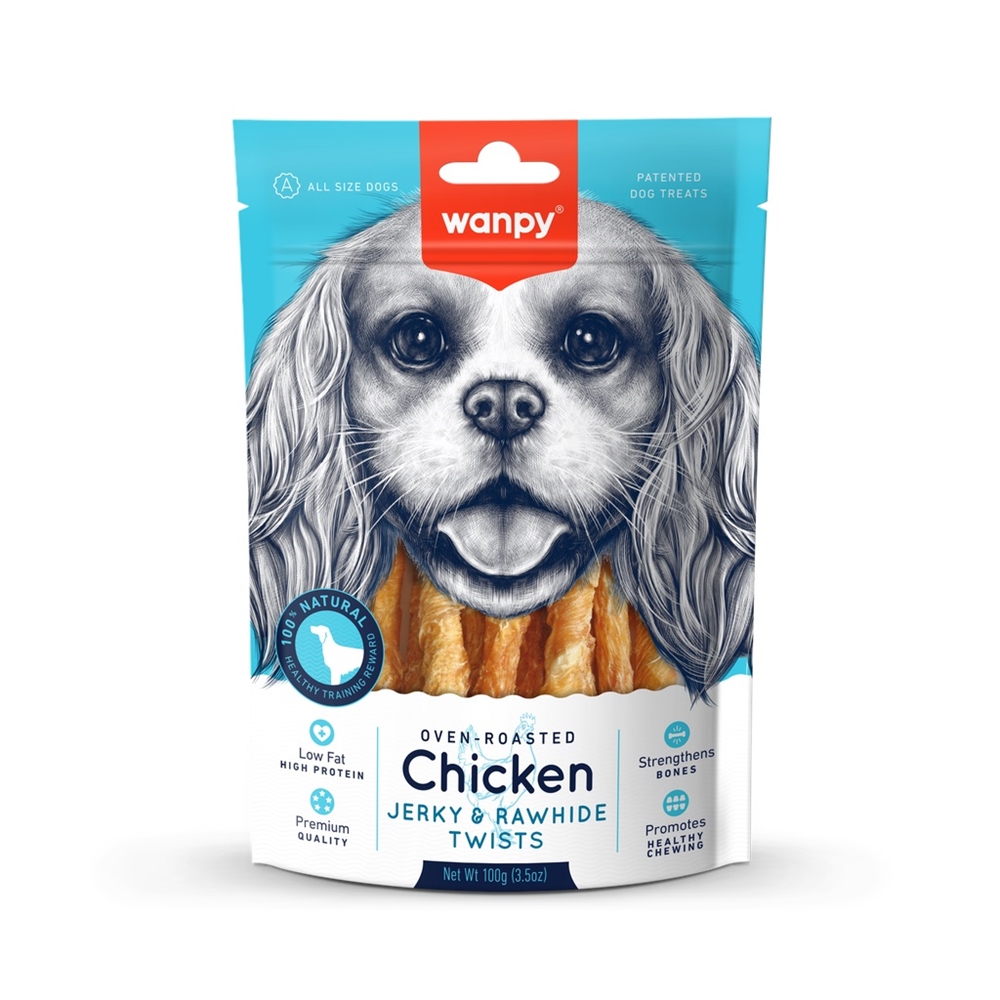 Chicken Jerky & Rawhide Twists - 100g - Wanpy