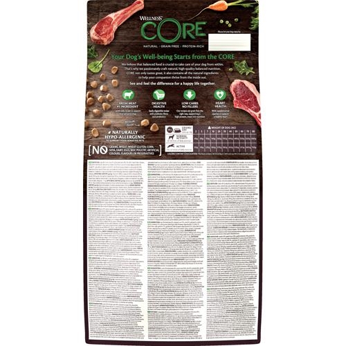 Lam 38% (fersk lam 20%, dehydreret lam 18%), ærter 20%, kartoffelprotein, kartofler, rapsolie, roetrævler 3%, naturlig aroma, ølgær (kilde til mannan-oligosakkarider) 3%, hørfrø 3%, lignocellulose, æbler, gulerødder 0,5%, gærekstrakt (kilde til mannan-oligosakkarider) 0,5%, Tørret cikorierod (kilde til frukto-oligosakkarider og inulin) 0,5%, Broccoli, Spinat 0,01%, Tomater, Blåbær, Tranebær, D-Glucosaminhydrochlorid 100 mg/kg, Chondroitinsulfat 100 mg/kg, Yucca Schidigera, Blandede urter (Tørret Rosmarin, Tørret Gurkemeje, Tørret Citrus, Tørret Eugenia).