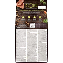 Kalkun 29% (fersk kalkun 17%, dehydreret kalkun 12%), kylling 24% (dehydreret kylling 17%, kyllingesovs 5%, kyllingefedt 2%), tørrede kartofler, ærter, roepulp 4%, kartoffelprotein, hørfrø 2%, lignocellulose, lakseolie 1%, gulerødder 0,5%, æbler, tørret cikorierod (kilde til frukto-oligosakkarider og inulin) 0,5%, Gærekstrakt (kilde til mannan-oligosakkarider) 0,5%, Broccoli 0,01%, Spinat, Tomater, Blåbær 0,01%, Tranebær, D-Glucosaminhydrochlorid 100 mg/kg, Chondroitinsulfat 100 mg/kg, Yucca Schidigera, Blandede urter (Tørret Rosmarin, Tørret Gurkemeje, Tørret Citrus, Tørret Eugenia).
