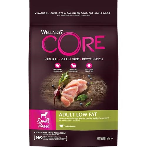 Kornfri og proteinrig, CORE Small Breed Adult Low Fat har fersk kalkun som hovedingrediens. En naturlig opskrift med kødproteiner af høj kvalitet sammen med en unik blanding af sunde grøntsager og superfoods, der udelader fyldstoffer og korn.