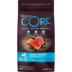 Kornfri og proteinrig, CORE Small Breed Adult Ocean har fersk laks som den vigtigste ingrediens. En naturlig opskrift med kødproteiner af høj kvalitet, sammen med en unik blanding af sunde grøntsager og superfoods, uden fyldstoffer og korn.