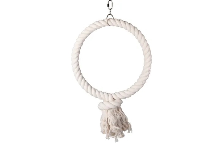 Lad din fugl svinge med stil med denne tykke vævede bøjle i bomuldsbur. Forstærket for ekstra sikkerhed og nem at fastgøre til stængerne. Kvasten tilføjer en ekstra udfordring under swinging. Perfekt til din fjerklædte ven!