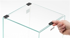 Dæksglas til aquaels nano akvarie på 19 liter med 3 sorte holdere påsat.