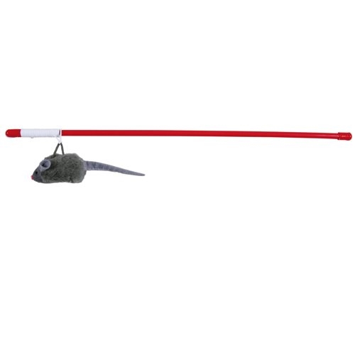 Drillepind med squieky mus med elastik snor på 49 cm plastik pind fra trixie.