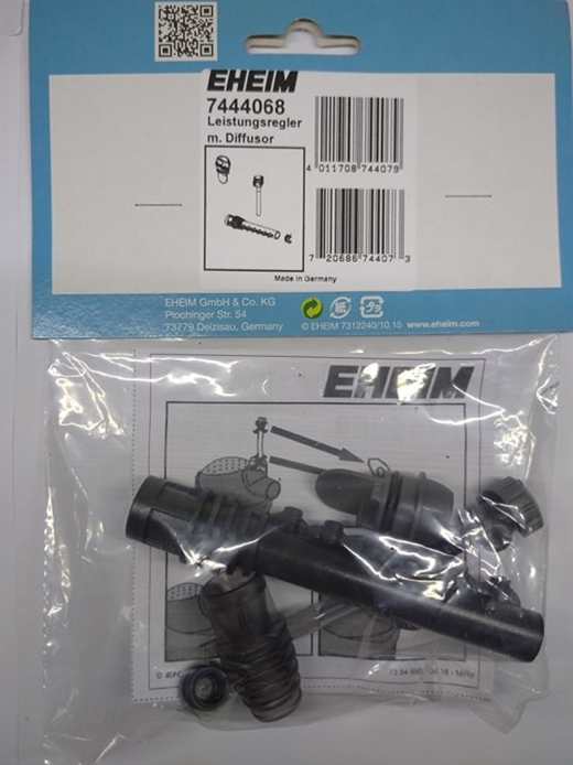 Med regulator , luftdiffuser, luftslange og udstrømmer rør.