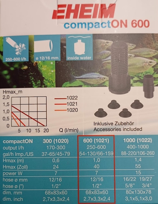 Eheim CompactOn 600 - cirkulations pumpe - 1/2" studs til 12/16 slange