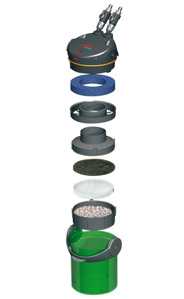 Filterkurvene leveres med fyldt med originale EHEIM filtermedier. Filteret er komplet udstyret og klar til brug.