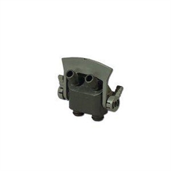 Slangeadapter med 2 integrerede stophaner, slangebeskyttelse og låsebeslag som en komplet enhed