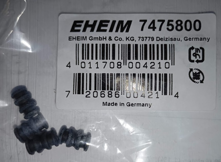 EHEIM Gummi Dæmper (vibration dampers) er reservedele designet til EHEIM StreamON+ strømpumper (streaming pumps) til akvarier. Disse sorte gummiringe eller -dæmpere monteres på pumpen for at reducere vibrationer og støj under drift, hvilket sikrer en mere stillegående og stabil installation. De er ideelle til både ferskvands- og havvandsakvarier, hvor de hjælper med at minimere mekanisk støj fra pumpens magnetfäste og flowfunktion. Produktet er produceret i Tyskland af EHEIM GmbH & Co. KG og passer til modeller som StreamON+ 3500, 6500 og 9500.