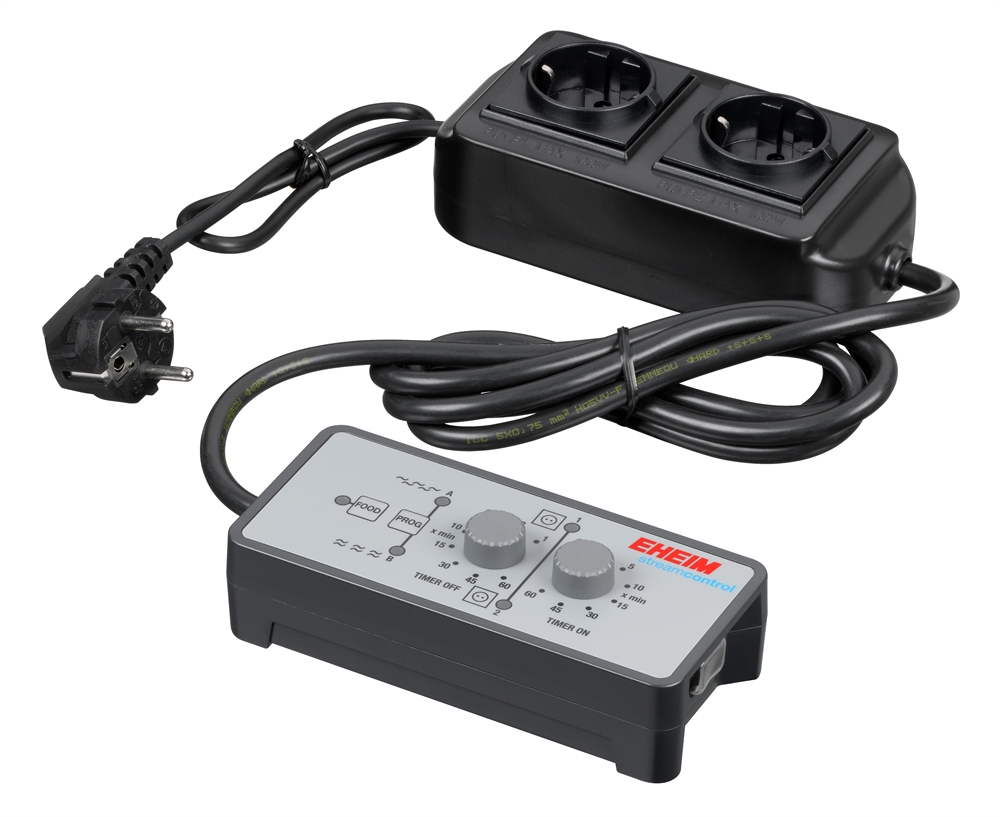 EHEIM streamcontrol tilbyder den ideelle løsning. Tilslut simpelthen pumpens stikkontakter til den medfølgende dobbeltstikstrimmel, tænd for enheden og indstil derefter flowintervaller. To programmer er tilgængelige: a) skiftevis pumpefrekvens og b) synkron pumpefrekvens. Du bestemmer blot tidsintervallerne med to drejeknapper.