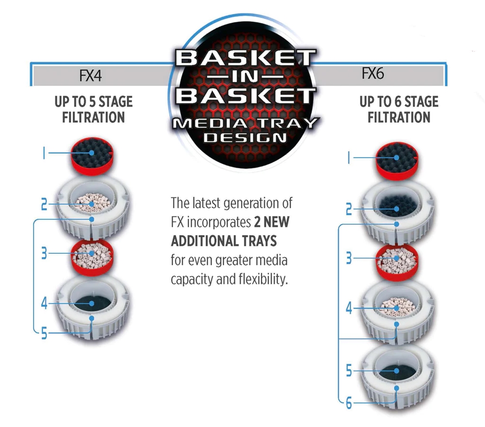 Fluval FX4 er et udvendigt filter som kombinerer kraftfulde filteregenskaber til akvarier på op til 1000 liter med det innovative Smart Pump mikrochipsystem, der kontinuerligt overvåger og forbedrer pumpens ydeevne. Filtret leveres inklusive mekanisk, biologisk og kemisk filtermateriale og kan straks tages i brug. For at holde kvaliteten af akvarievandet konstant højt, er der brug for et kraftigt filter, som hele tiden fjerner snavspartikler og skadelige stoffer fra vandet dette opfylder Fluvals FX4.