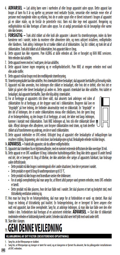 • Kombiner med andre filtre: For bedste resultater, brug UVC-enheden sammen med et kvalitetsfilter.