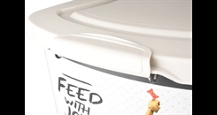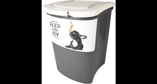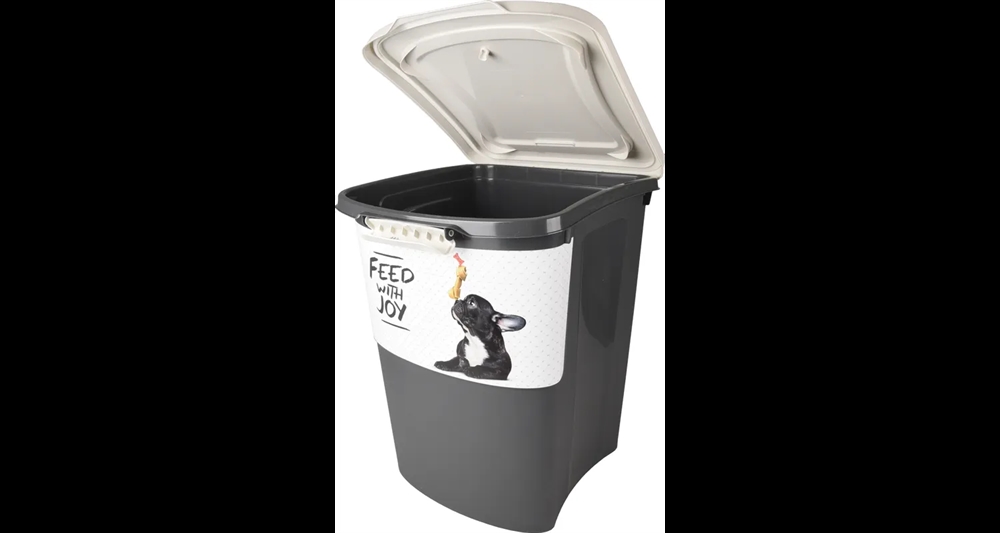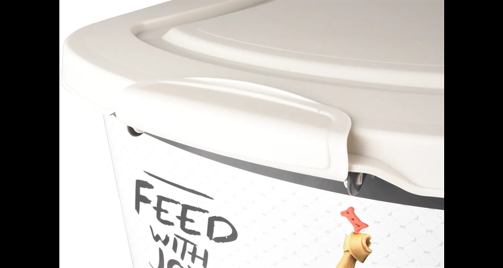 Indeholder foder- og drikkeskåle:    Flip-åbent låg , Med fordybninger , Med skovl , Med hjul