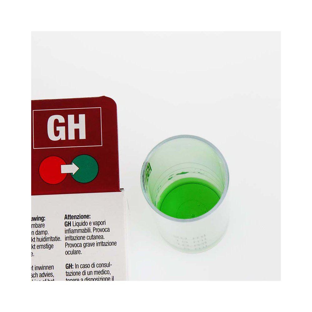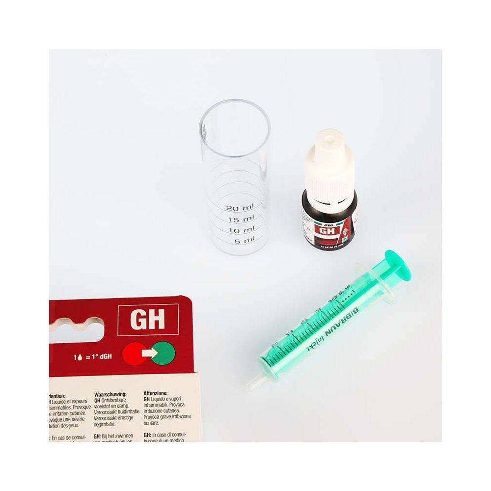 Farveændringstest: fyld plastkuvetten med en vandprøve, tilsæt reagens dråbevis, indtil farven skifter fra rød til grøn Antal dråber = hårdhedsgrad.
