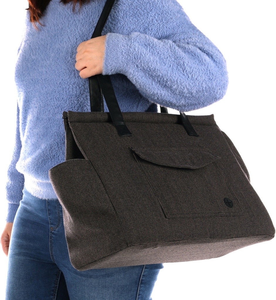 Denne handy og stilfulde taske er perfekt, når du er på farten! Fremstillet af polyester og fyldt med skum for at bevare formen. Nem at rengøre med en fugtig klud. Den har lynlåslukning i toppen og aftagelig bund med lynlåslukning og aftageligt betræk for nem rengøring. Den justerbare rem med karabinhage giver ekstra sikkerhed. Den har også et praktisk opbevaringsrum, bærehåndtag og en lille åbning til tilbehør.