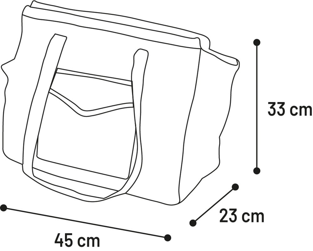 Dimensioner: 45 cm L x 23 cm B x 33 cm H